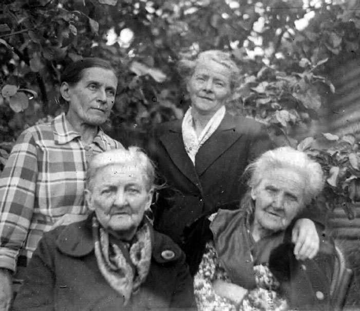 Раёво 1957 г. Головщикова Мария Валерьяновна, Василькова Юлия Валерьяновна (сидят), Мельникова Елена Николаевна