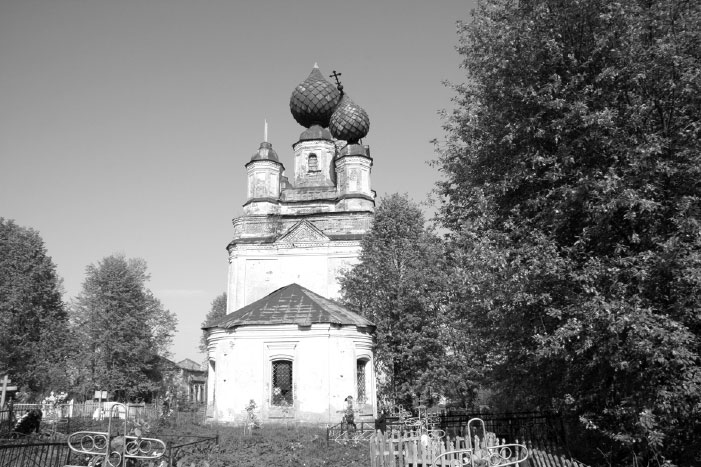 «Никольский» храм назван в честь Николая Чудотворца – одного из самых любимых русским народом святых. Первоначально деревянная, церковь со временем стала ветшать и разрушаться. На средства жертвователей в 1799 г. построили новый – уже каменный пятиглавый трехпрестольный храм. Сто лет назад церковь выглядела торжественно и величаво: горделивый шпиль, обитый белым железом; фасад, украшенный резными изображениями евангелистов, пророков и архангелов на особых каменных подставках; «иконостас (…) пятиярусный с прекрасной золоченой резьбой»; «изящное пятиярусное медное сплошь посеребренное паникадило[195] (…) Свод храма представляет в своей живописи церковь небесную, на боковых же стенах и простенках в два ряда изображена церковь земная в лицах своих прославленных членов с древнейших времен…»[196].
