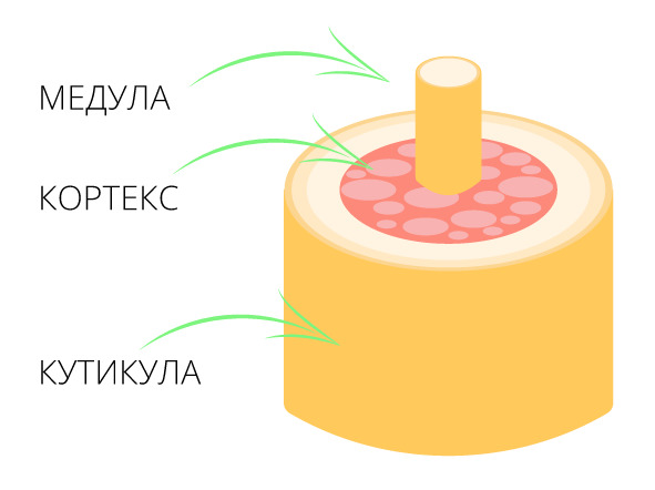 ВОЛОСОК СОСТОИТ ИЗ СЛЕДУЮЩИХ СЛОЕВ: