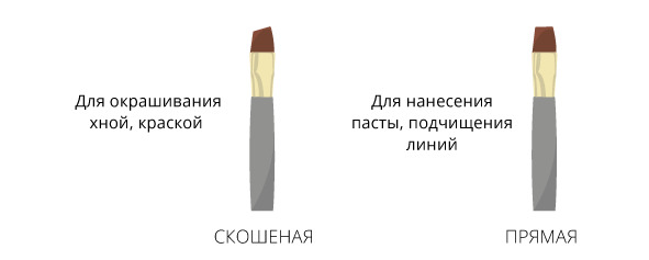 Для нанесения хны рекомендую использовать скошенные кисти с жестким ворсом (например: синтетик 5, Valery-Д, Nikk Mole). Это только малая часть, которую я могу порекомендовать.