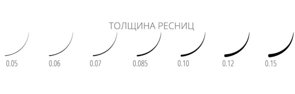 Самые распространённые и ходовые толщины – это 0.07 и 0.1 миллиметр. Данные толщины идеально будут подходить и для классики, и для объёма, а для гиперобъёмов рекомендуется использовать толщины 0.05мм