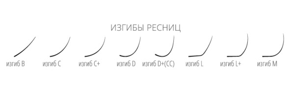 Так же на сегодняшний день остаются очень популярными такие изгибы, как L и M. Ну а для любителей лисьего эффекта или максимально натурального, на сегодняшний день самыми ходовыми ресницами являются ресницы с изгибом С +.