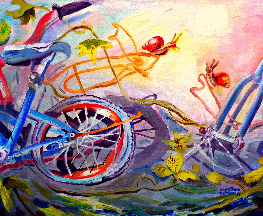 Оставим улиток спорить наедине. Им ещё есть что обсудить, чему поучить друг друга. Мы же с вами давайте посмотрим на солнечные блики, отражающиеся на сломанных велосипедах… и на ещё что-то прекрасное. Может, вне картины. Вокруг ведь много всего, не правда ли?