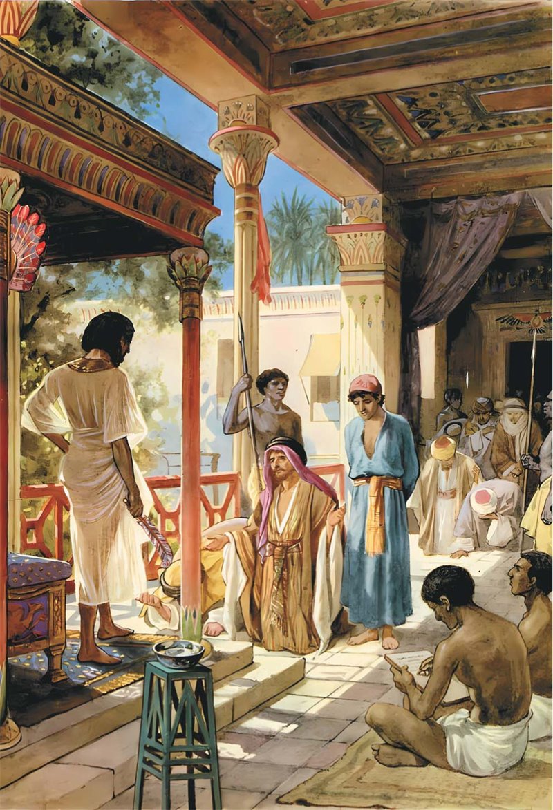 (Быт 39–41)Купцы привезли Иосифа в Египет и продали его на невольничьем рынке царедворцу по имени Потифар. Иосиф стал рабом и должен был делать все, что ему прикажут. Но так как юноша выполнял свою работу честно и добросовестно, вскоре Потифар сделал его управляющим в своем доме. Шло время, и казалось, что жизненные обстоятельства юноши складываются удачно. Но коварная жена Потифара оклеветала Иосифа перед своим мужем. Рассерженный Потифар приказал посадить Иосифа в тюрьму. Вместе с ним сидели виночерпий и хлебодар египетского фараона.