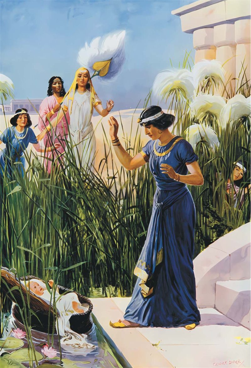 (Исх 2, 1-10)В семье израильтян Амрама и Иохаведы, происходивших из колена Левиина, в то время родился мальчик. Мать три месяца скрывала младенца от египтян, продолжавших уничтожать еврейских сыновей. Но когда возникла опасность того, что тайна семьи раскроется, женщина взяла тростниковую корзину, обмазала ее смолой, чтобы та не пропускала воду, и, положив туда малыша, оставила в зарослях тростника на берегу Нила. Свидетельницей этому была лишь старшая сестра младенца по имени Мариам. Она наблюдала издалека за корзиной с мальчиком.