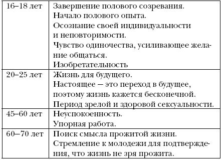 В 45 лет люди начинают всерьез задумываться о том, что смертны, и если не поспешат определиться, жизнь превратится в выполнение тривиальных обязанностей для поддержания существования. Эта простая истина вызывает шок. Переход ко второй половине жизни кажется очень жестким и слишком быстрым, чтобы его спокойно принять.