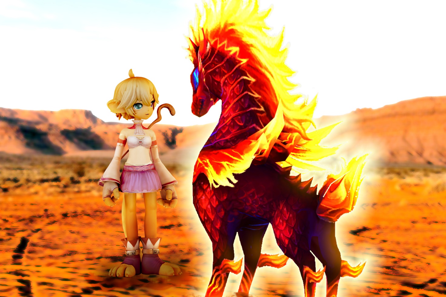 Девочка-кошка посмотрела на огненный столб и прищурилась. Теперь, когда свет пламени перестал ослеплять, она смогла разглядеть крылатого коня. Это было очень красивое создание, которое пылало.