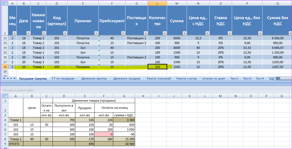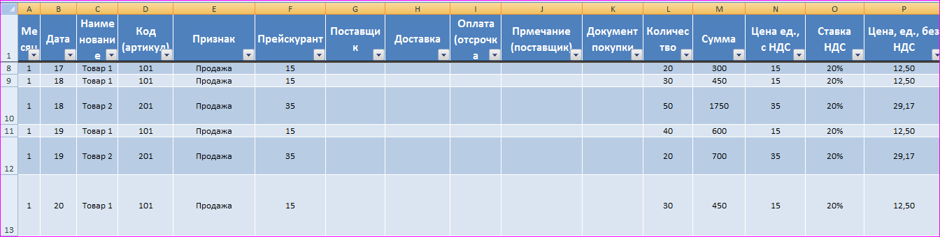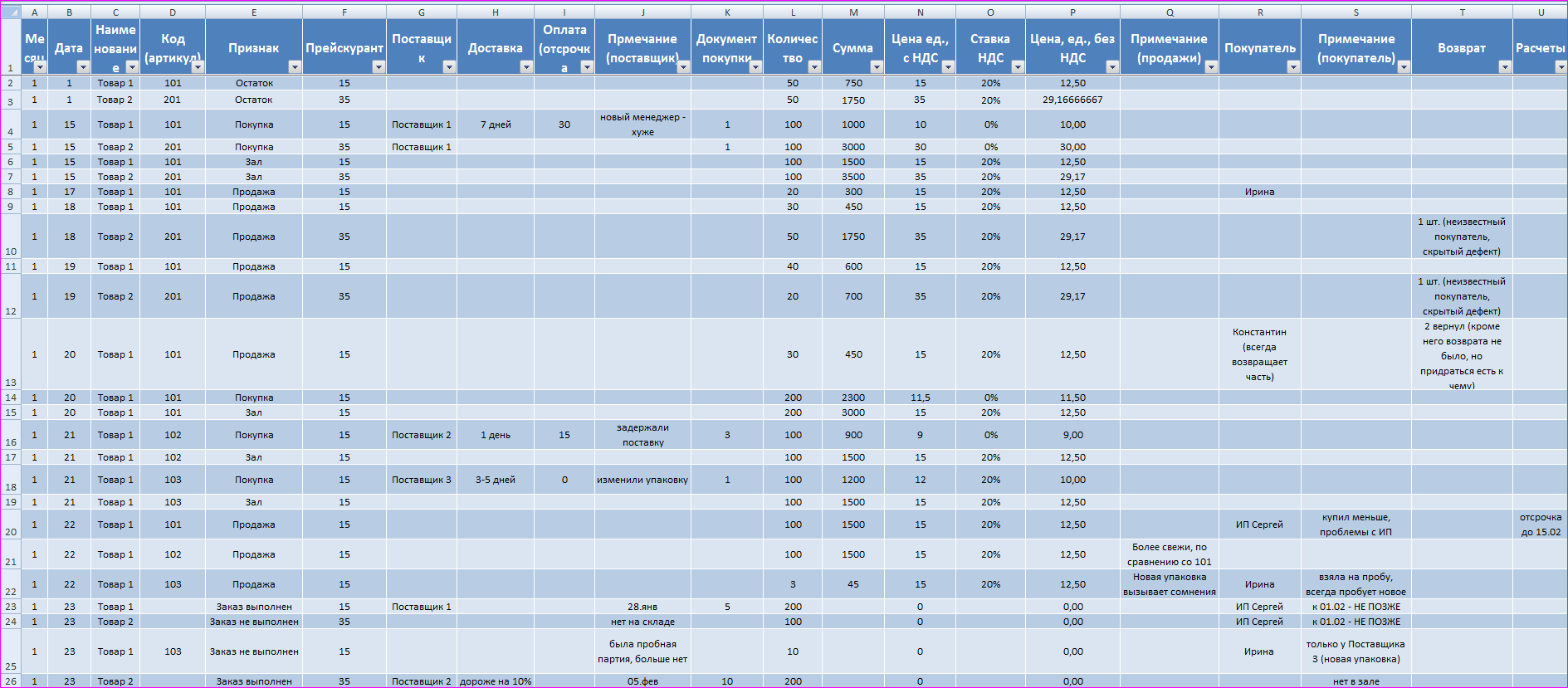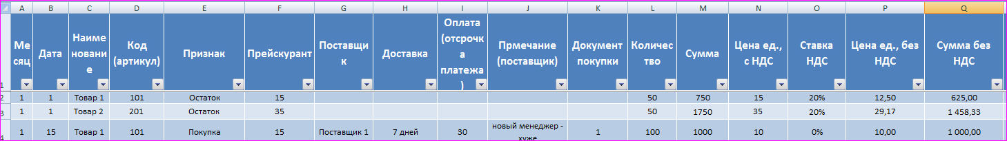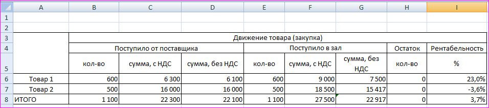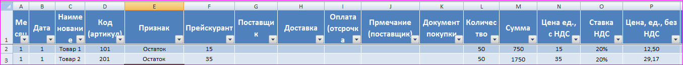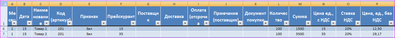 Этот реестр был сделан в качестве примера для торгового предприятия, в котором товар закупается для последующей перепродажи.