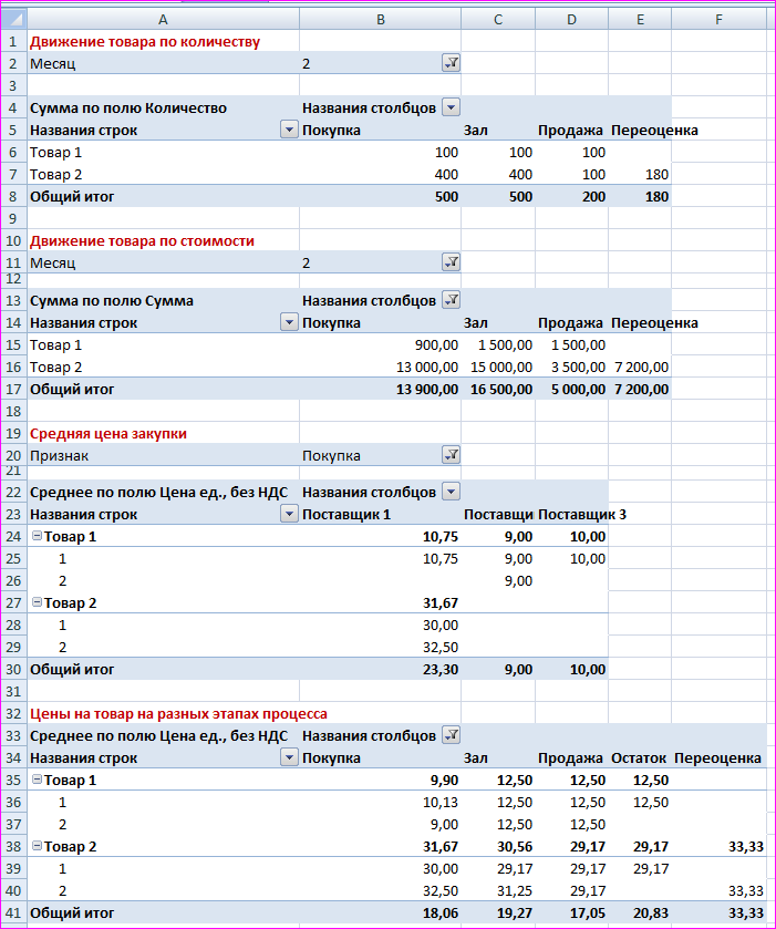 Учет движения товара в форме реестра позволяет не только работать с фильтрами, но и строить на его основе большое количество аналитических таблиц.