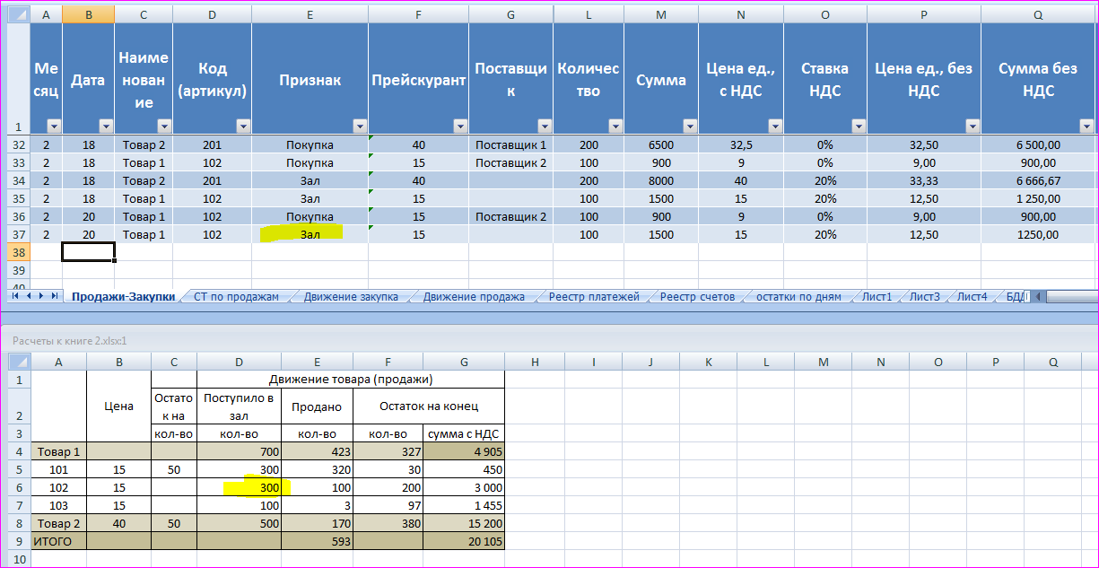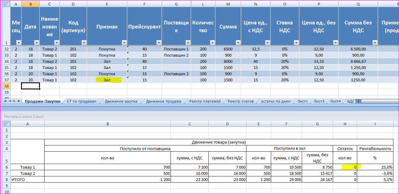 Теперь более подробно о формулах. Формулы ссылаются на реестр «Продажи и закупки».