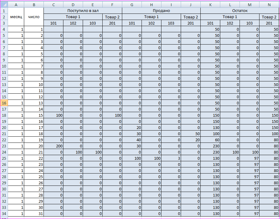 В этом блоке отражено ежедневное движение товаров только по количественным показателям без цены.