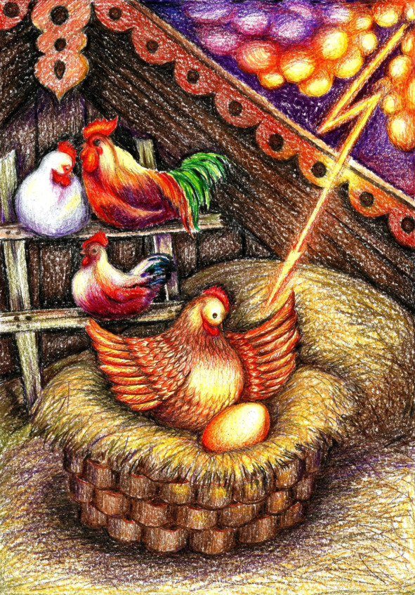 Вы слышали сказку «„Курочка Ряба“ по-новому»? Как в одну грозовую ночь снесла курочка Ряба яичко не простое, а золотое? Как потом из того яичка вылупился золотой дракончик? Конечно, не могла такое яичко снести курочка Ряба – оно было занесено неведомыми силами, с помощью молнии, в самое гнездо курочки Рябы.