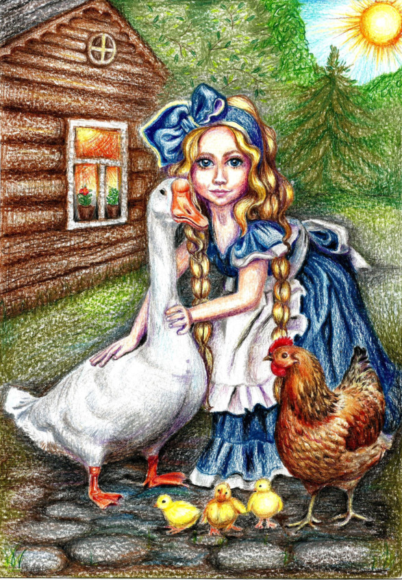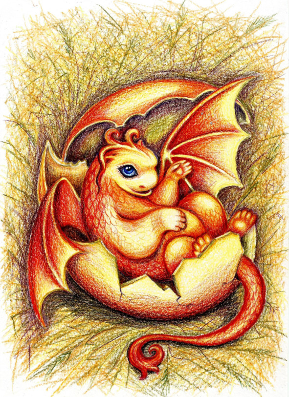 Не стали его бить баба с дедой, а стали ждать, когда из него вылупится цыпленок. Прошло время, и вот чудо, вылупился не цыпленок, а золотой дракончик. Но самое удивительное, дракончиком он был только ночью, а с первыми лучами солнца превращался в прелестную девочку. Назвали её старики Златой. И были очень рады, что у них появилась доченька.