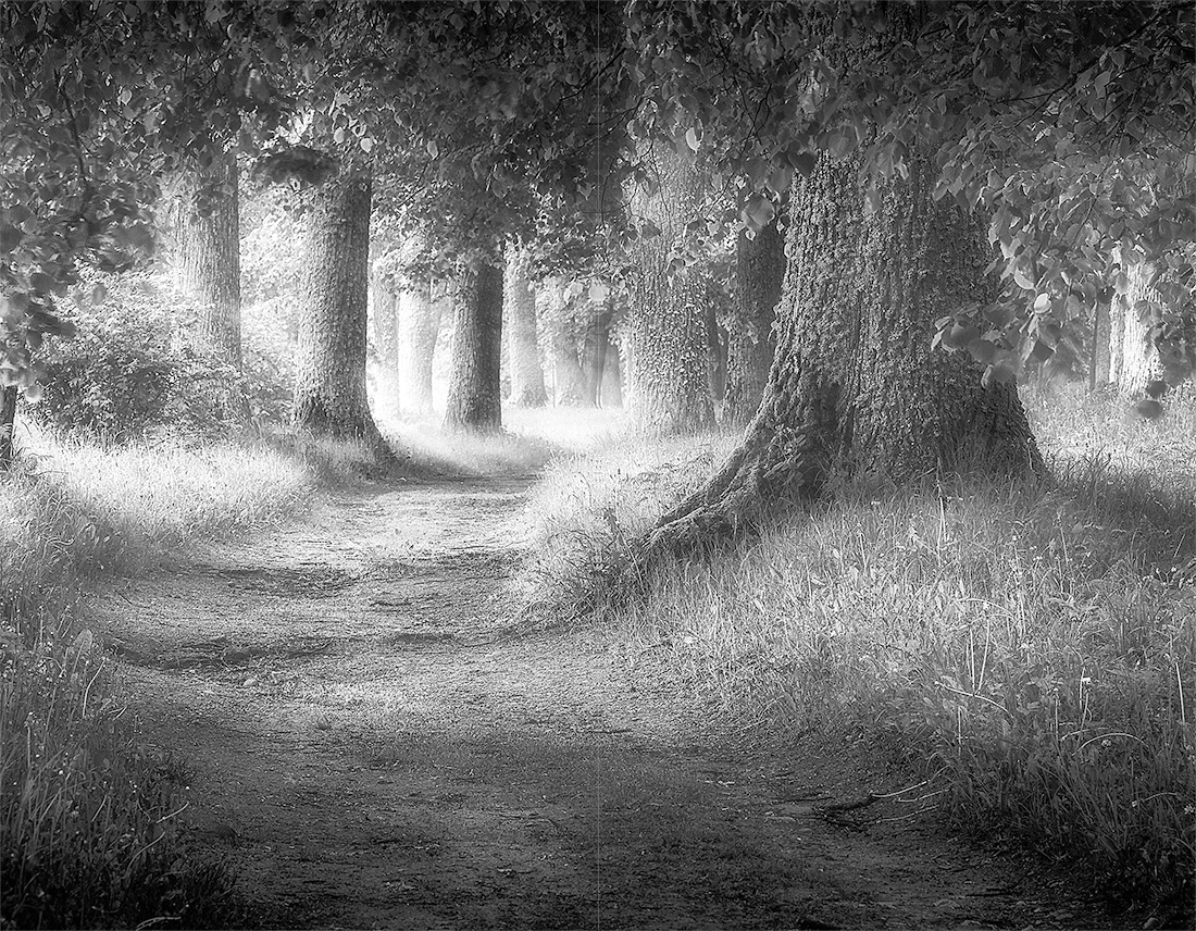 Дойдя до леса, Даша остановилась, потому что перед ней открылась живописная картина. Туда, где начинались деревья, солнечные лучи, из-за холма, на котором стояла деревня, уже не попадали, и там оказалось неожиданно темно. Свет и тень разделялись как по линейке. С одной стороны было светло, пели птицы, и все краски дня радовали взгляд девушки, с другой стороны было темно, тихо и жутко. Казалось, что если шагнуть вперёд, то сразу окажешься в кромешной тьме, где даже дороги не разглядишь и непременно пропадёшь.