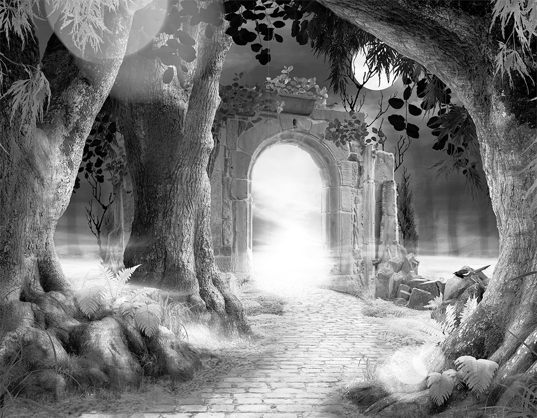 Она оглядела поляну, по деревьям, стоявшим на её границе, определила север и юг, и, надев рюкзак, направилась в нужном ей направлении, громко читая молитву «Отче наш», которую миллион раз слыша от бабушки, и непроизвольно запомнила как стихи Чуковского. К удивлению девушки, на пути не попадалось ни коряг, ни высокой травы, ни кустарника, привычных для любого леса. Деревья словно расступались перед ней, показывая направление, и яркая луна освещала путь. Через некоторое время, Даша поняла, что если бабушкин метод и работает, то как-то странно, сейчас никто её, вроде не морочил, но на дорогу она так и не вышла. И ещё эта луна… Луна её действительно пугала, потому что наша путешественница чётко помнила, что сегодня не могло быть полнолуния, сегодня был последний день убывающей луны. Маленький, липкий испуг начал потихоньку заполнять её мозг, и постепенно охватывать всё тело. Она уже начала чувствовать как начали неметь руки и ноги, стало страшно, по щеке потекла непрошеная слеза, и вдобавок ко всему, заморосил мелкий дождь. Даша уже давно заметила, что если у неё плохое настроение и хочется поплакать, то погода как специально добавляет градус грусти, и на улице непременно начинается дождь или снег. Сегодня исключения не случилось.