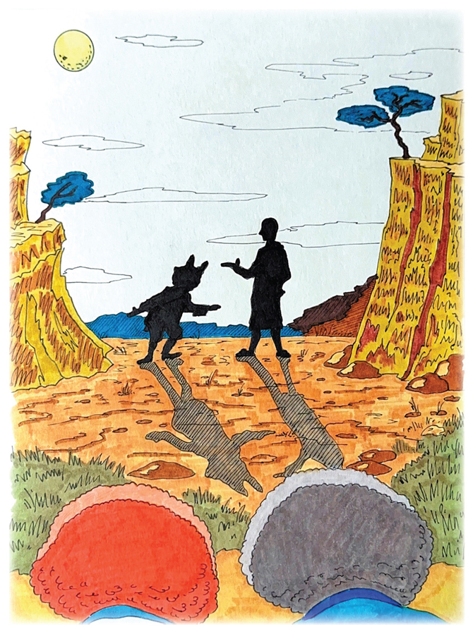 Другой дорогой к скале направлялась еще одна фигура, облаченная в балахон. Приблизившись, она остановилась. Стало ясно – это Мудрейший Ом.