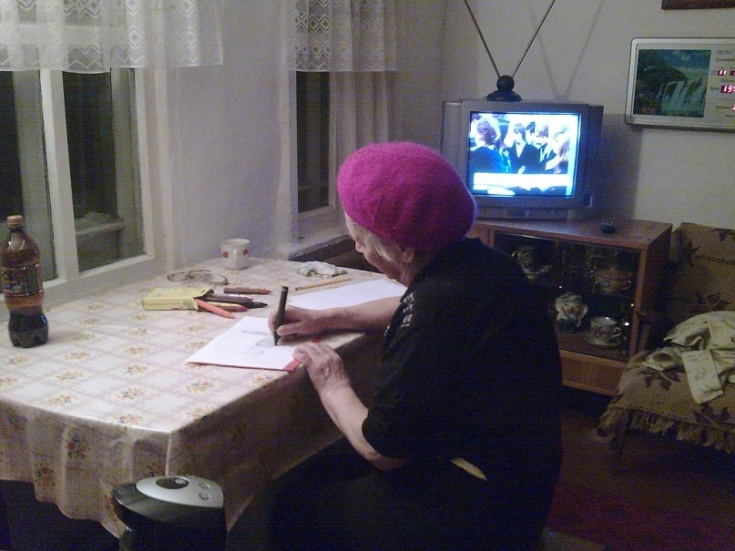 – Мама очень бережёт глаза. Из-за этого не вяжет, считает это занятие бесполезным. Не читает ничего, тоже из-за глаз. Но телевизор смотрит постоянно. Раньше читала журналы по медицине, связанные со здоровьем. Но не ЗОЖ (Здоровый образ жизни), а научные.