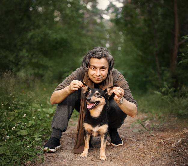 На момент публикации книги (май 2022 года) владелец эрдельтерьера Аякса и опекун «нано-овчарки» Тори.