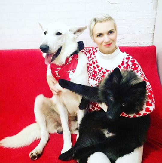 В настоящий момент владелица белой швейцарской овчарки Оушена и гросс-шпица Ефрата.