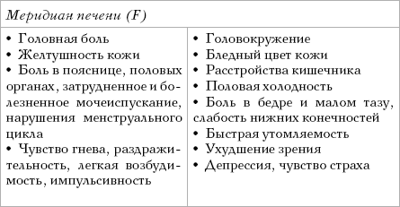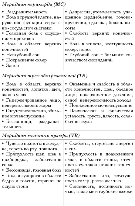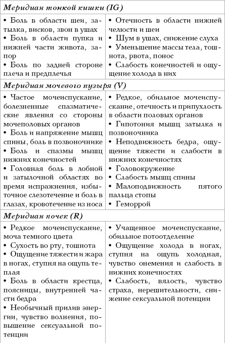 Признаки избыточности и недостаточности энергии в 12 основных меридианах