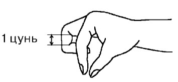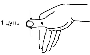 В древности пользовались измерением, называемым «индивидуальным цунем». Это расстояние между первой и второй межфаланговыми складками III (среднего) пальца левой руки у мужчин и правой – у женщин.