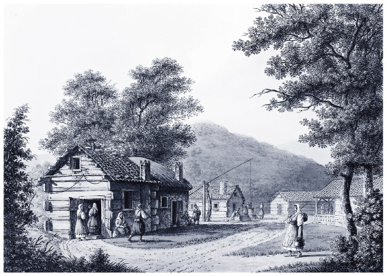 Сербская деревня. Иллюстрация Луиджи Майера из книги 1810 г. «Виды владений Османской империи в Европе, Азии и на островах Средиземноморья».