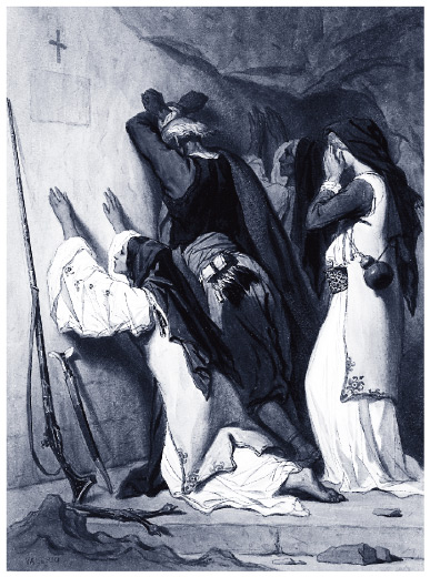 Балканские крестьяне молятся в пещерной часовне. Картина Теодора Валерио. Около 1867 г.