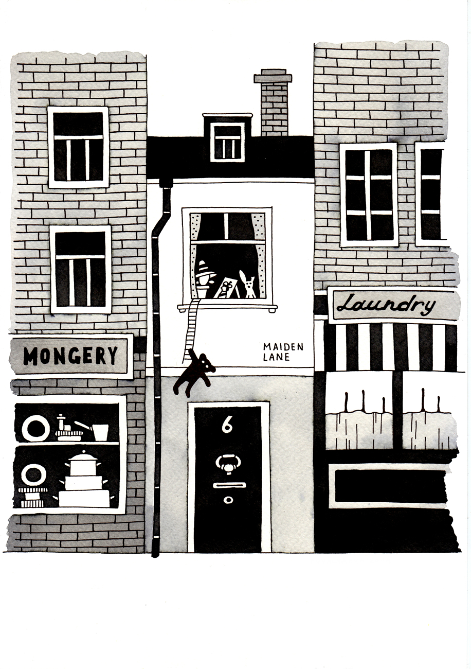 Единственное окно во втором этаже несет на себе явственный отпечаток личности хозяйки дома. Серые в белый горошек занавески с оборками всегда отдернуты так, чтобы был виден стоящий на подоконнике кактус в кокетливо сдвинутом набок сомбреро (какими нередко украшают бутылки с текилой), фарфоровый заяц с отбитым ухом и вырезанный из журнала коронационный портрет Елизаветы II. С внешней стороны к оконной раме приделана игрушечная веревочная лестница, на которой болтается некогда ярко-зеленый, но теперь поблекший от дождей и туманов плюшевый медведь.
