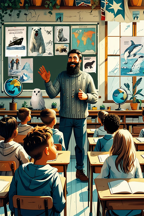The children had been reading about the Arctic with great interest and dreamed of seeing it with their own eyes. And now they finally had the opportunity to hear stories from someone who had been there. The room was so quiet that it seemed even the snowflakes outside the window had frozen so as not to miss a single word.