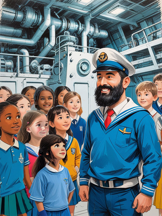 After the meal, the children and the captain were assigned duties. There was work to be done on the ship – helping in the kitchen, keeping the cabins tidy, and standing watch on the captain's bridge. Of course, everyone wanted to be on the bridge with the captain, but he fairly distributed the duties so that each child got their share of work – both in the kitchen and on the bridge.