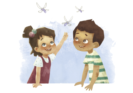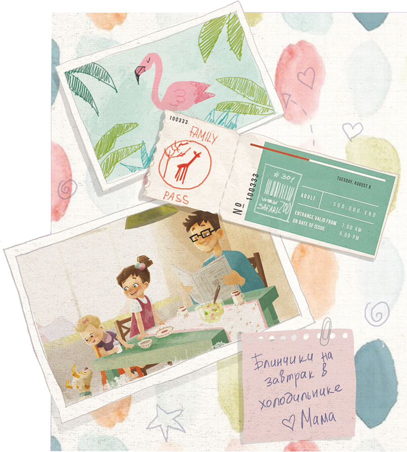 – Привет, я Мира. Мне шесть лет. А это моя семья: папа, мама, брат Гоша и сестрёнка Бейби. Ещё у меня есть собака Соня, две бабушки, один дедушка и лучшая подруга Ева. Я люблю кататься на самокате, прыгать на батуте, играть в футбол и есть блинчики по субботам. Чаще всего я встречаюсь с друзьями на площадке перед домом, но иногда они приходят ко мне в гости. Я задаю много вопросов, и родители помогают мне находить на них ответы.