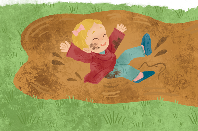 Брат сначала отвернулся, но, подумав секунду, улыбнулся и схватился за протянутую руку мокрой и грязной ладонью. Это было противно. Мира снова подумала, что поступила некрасиво. Ведь если ей так неприятно от прикосновения к Гошиной руке, то как же неприятно Гоше сидеть в луже! Эх, зачем она его толкнула? И тут случилось что-то непредвиденное. Гоша резко дёрнул рукой, и миг спустя Мира сидела в грязной луже вместе со всеми.