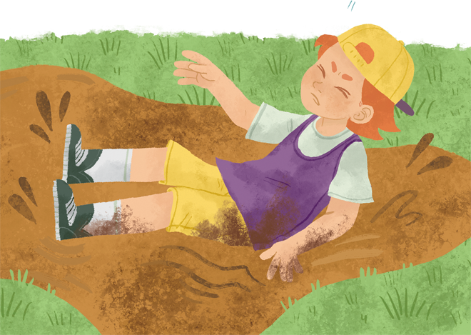 Он пытался ухватить Бейби и даже встал одной ногой в тёмную жижу. Сестра сопротивлялась: она прятала руки за спиной, ёрзала и мотала головой. Ей очень нравилось сидеть в луже, и она не хотела идти мыться. Гоше почти удалось поймать Бейби за руку и поднять её, как вдруг в спину его кто-то толкнул, и он не удержал равновесие. Уже падая, он лихорадочно соображал, как лучше: свалиться на Бейби, но не испачкаться или упасть правее, но сильно намочить рукав и штаны. Он выбрал второе.