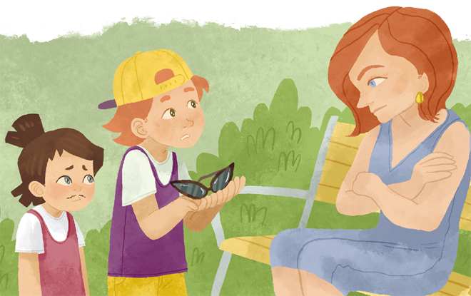 На скамейке всё так же сидела Евина мама. Ребята подошли к ней и принялись извиняться. Сначала тётя Лада казалась очень сердитой, но с каждым Гошиным словом она как будто немного добрела. Мальчик объяснил ей, что они заигрались и совсем не подумали, как это выглядит со стороны.