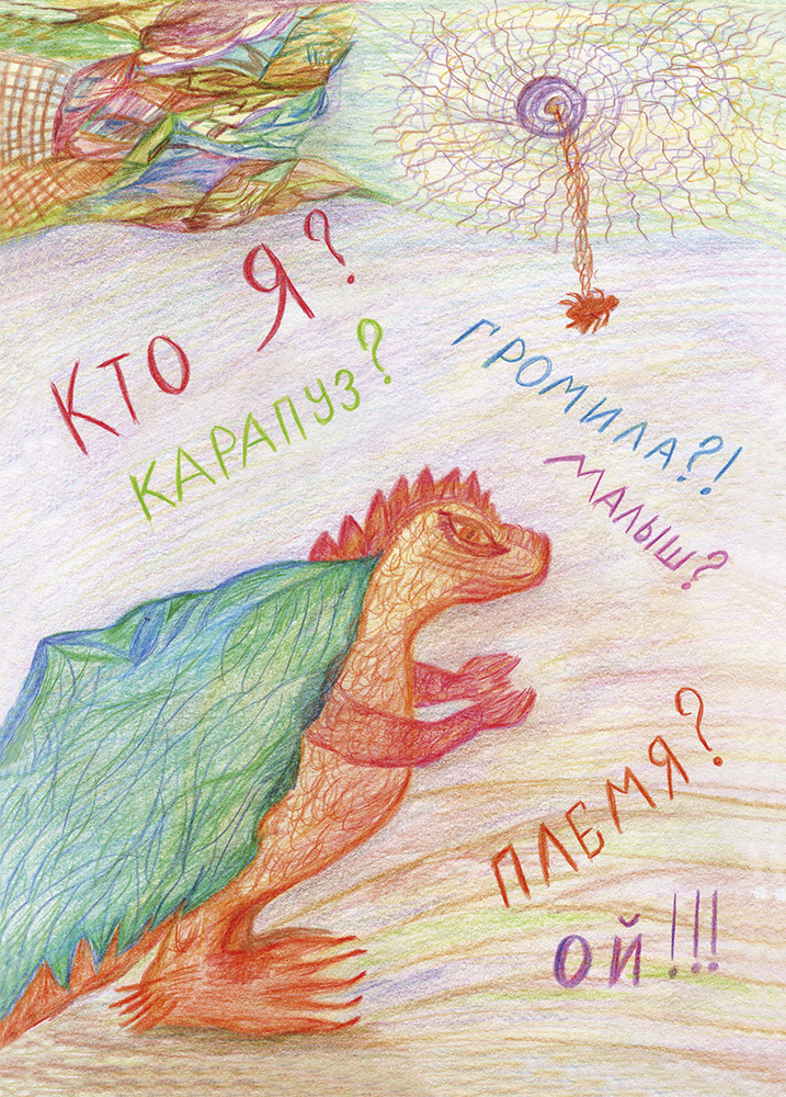 «Ой, – подумал Дракончик. – Как же меня зовут? Малыш, карапуз, племя или громила? Совсем запутался».