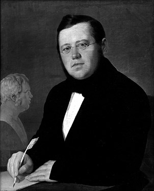 Ил. 8. Бюст Крылова на портрете М. Н. Загоскина работы В. А. Тропинина. Конец 1830‑х – начало 1840‑х годов. Фрагмент.