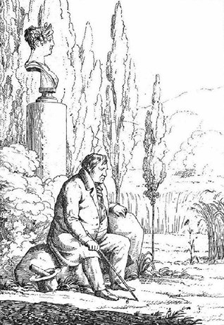 Ил. 9. Крылов в Собственном садике императрицы Марии Федоровны. Сапожников А. П. Иллюстрация к басне «Василек». 1834.