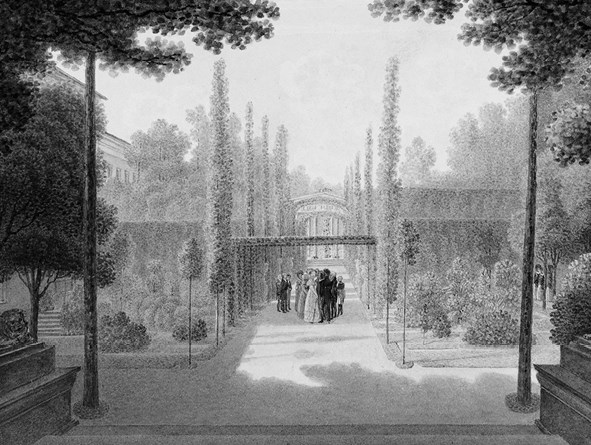 Ил. 10. Неизвестный художник. Собственный садик императрицы Марии Федоровны в Павловске. 1820‑е. Фрагмент. Музей-заповедник «Павловск».