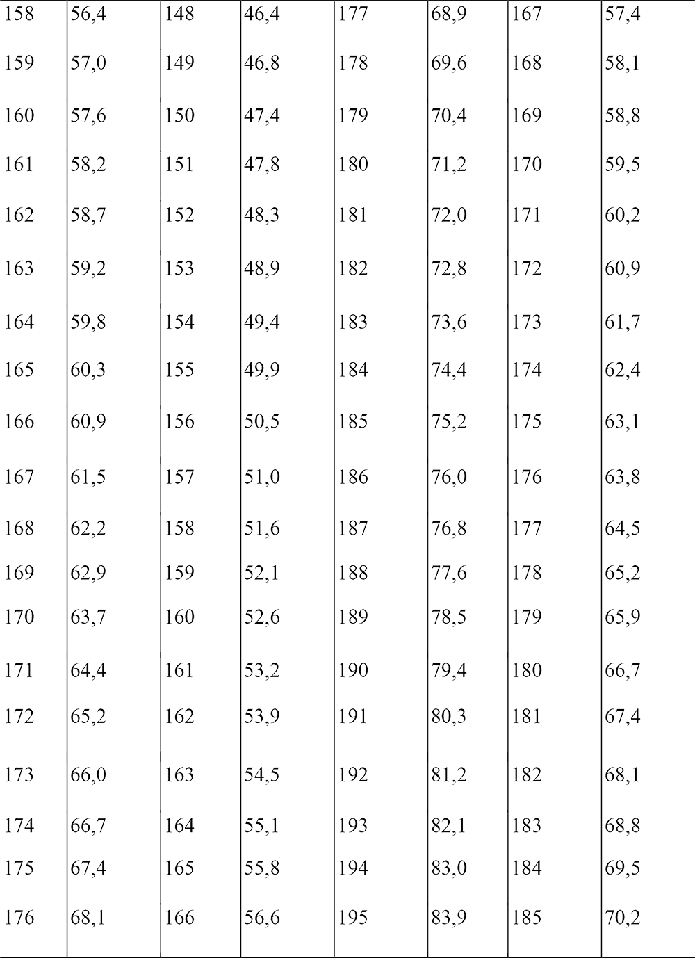 Таблица 1. Определение веса мужчин и женщин по отношению к их росту