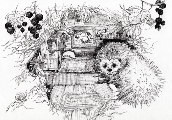 У Яблокина не один дом, а целых два: зимний и летний. Зимний – обычная ежиная норка. Ёж делает её осенью под досками старого сарая, рядом с огромными лопухами. Норка служит ему спальней, ведь ежи зимой всегда спят. В ней лежит кучка хвороста, покрытая слоем листвы и мягким зелёным мхом. Доски закрывают убежище от посторонних взглядов, особенно собачьих – с собаками у Яблокина отношения складываются сложно.