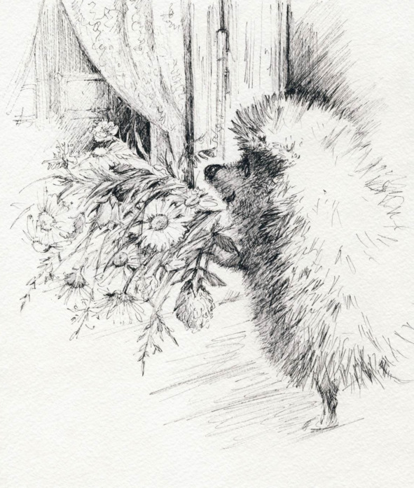 Поколебавшись, Ёж всё-таки взял себе пару крепких подосиновиков. «Мы теперь одна семья, – бормотал он, нанизывая грибы на иголки. – Мне ведь до дальнего леса полдня идти, да и обратно ещё… А так я супчик себе сварю.» Размышляя, чем отблагодарить хозяев, Яблокин решил подарить им цветы. Нарвал полевых ромашек и бережно положил их на окошко.