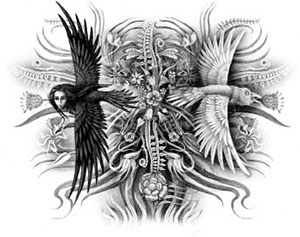 Его светлые волосы вдруг удлинились и изменили цвет на более глубокий, серебристо-пепельный, и засияли в сумеречной темноте дворика. Тело парня сильно изогнулось, длинные руки в белых рукавах превратились в крылья, покрытые узкими бело-серыми перьями, длинный бело-серебряный хвост-опахало, вытянулись узкие, как у цапли, ноги. Голова стала небольшой, с аккуратным клювом и серебристым венчиком.