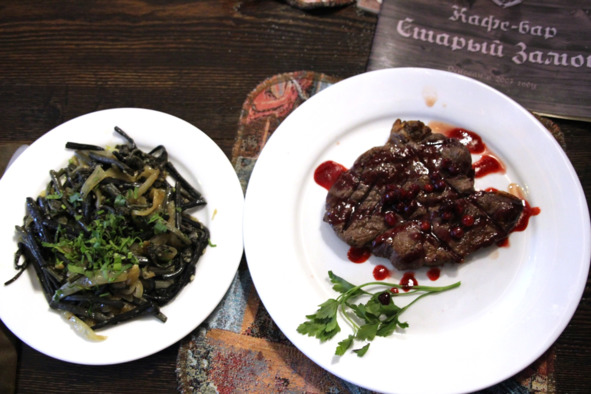 Расспрашивала всех о местной кухне. В итоге отправилась в ресторан «Старый замок» дегустировать оленину с брусничным соусом. К ней в качестве гарнира взяла жареный папоротник. Вкуснотища!!! Официантка рассказала рецепт http://fastit.ru/venison.html