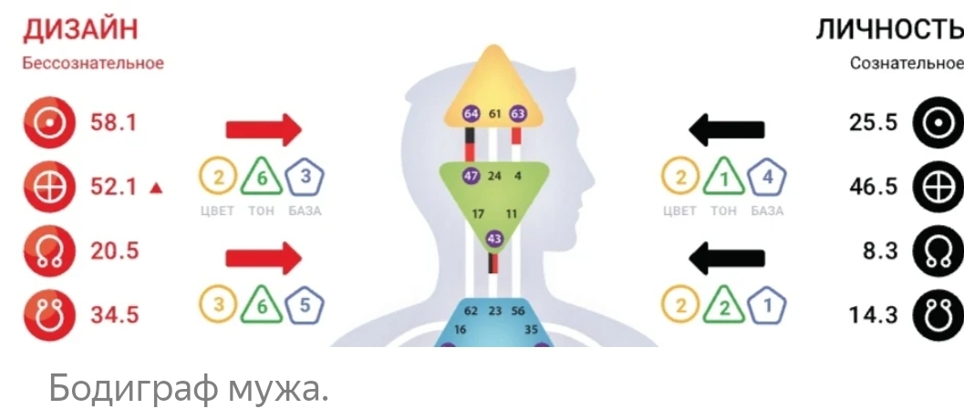 Мужа я вам также по арканам разложила. И дизайн человека только подтвердил те данные, которые мы смотрели на Таро по нашим датам рождения.