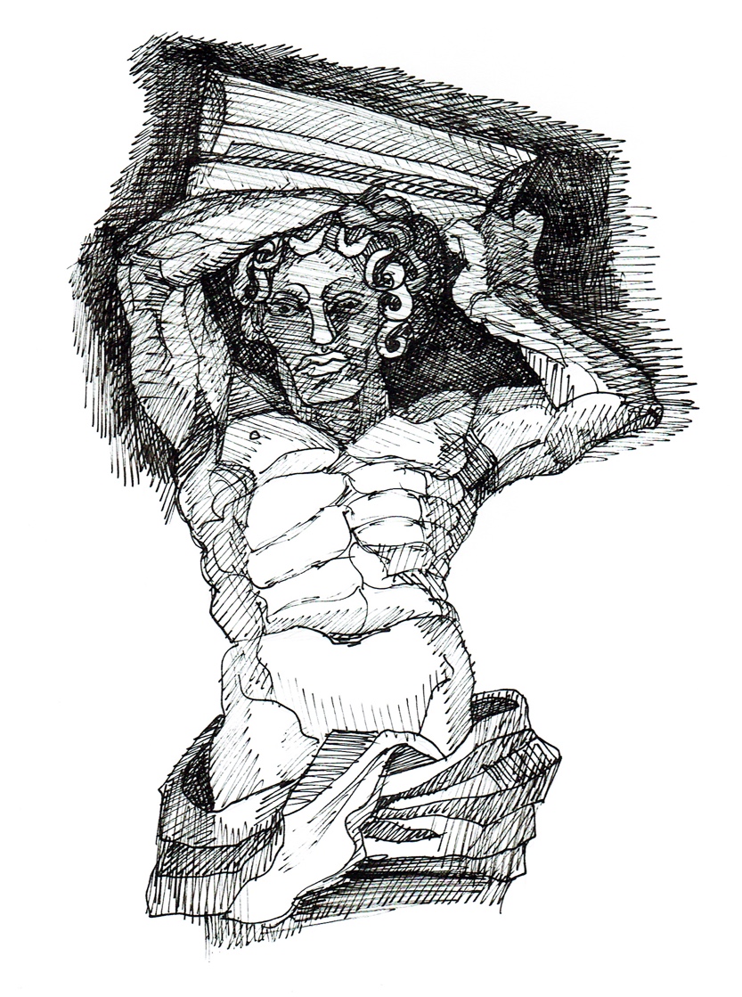 Странное дело, с тех пор Исабель стала ощущать тот самый взгляд на себе, где бы она ни была: в парке, на набережной у озера, во время вечерних прогулок. Однажды, совершая обычный променад безо всякого дела, она наконец столкнулась с самим смотрящим, глаза в глаза. Она стояла перед старинным зданием на площади, и с трёхметровой высоты на неё взирал немного суровый, но обладающий благороднейшими чертами каменный лик. В его глубоко посаженных под тяжёлыми бровями очах как будто застыл немой вопрос. Ошарашенная, Исабель хлопала ресницами, взгляд её светлых водянистых глаз застыл, серёжки дрожали в её ушах, и она почувствовала себя маленькой девочкой, которая ни в чём не была виновата, но это нужно было ещё объяснить… Изваяние из серого камня представляло собой прекрасную и мощную мужскую фигуру, поддерживающую вычурные балконы в изобилии лепнины – украшенных лентами лавровых гирлянд. Исабель простояла достаточно долгое время, наслаждаясь видом основательно выполненного в анатомическом отношении торса, обладающего безусловной эстетической ценностью – в этом-то она понимала. Изумлённый взор её блуждал по могучим формам, на лицо же она боялась посмотреть. Лицо статуи было как будто живым, пронизывающий каменный взгляд не позволял ей сдвинуться с места. На классически правильных губах застыла играющая самыми разными смыслами полуулыбка.