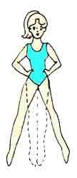 С помощью упражнений можно улучшить форму ног. Форма и объем ног зависят от толщины костей бедра и голени, а также от развития основных мышечных групп. Окружность бедра определяет прежде всего четырехглавая мышца бедра, которая располагается спереди, а голени – трехглавая, расположенная сзади. Эти мышцы могут быть тонкими и слабыми или же массивными и тоже слабыми. Все зависит от их тренированности. Упражнения подтягивают растянутые и расслабляют укороченные мышцы, поэтому при большом терпении и настойчивости удается даже уменьшить легкую кривизну ног. Необязательно выполнять все упражнения, которые даются в разделах, сразу. Достаточно выбрать несколько упражнений из интересующих вас разделов и включить в утреннюю зарядку. Недели через две заменить их другими. Для ощутимого эффекта, упражнениями из интересующих вас разделов, надо заниматься три-четыре месяца. Но не напрягайте мышцы до предела с первых занятий, это может вызвать травмы сосудов. Сигналом к прекращению занятий является чрезмерное покраснение кожи или ее чрезмерная бледность, затруднение дыхания и просто сильная усталость. После занятий обязательно примите душ.