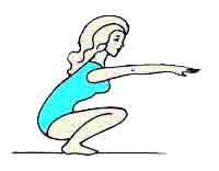 5. Выполняется как упражнение № 3, только ноги должны быть предельно расставлены.
