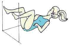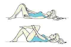 а) поднимая ноги и таз при неподвижной грудной клетке в положении сидя и лежа на спине;