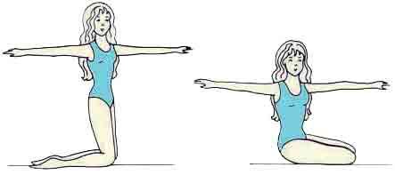 2. Встаньте на колени и разведите руки в стороны (см. рис. 33а). Садитесь на пол то вправо, то влево рядом с ногами (см. рис. 33б). При смене положения выпрямляйте корпус. Повторите упражнение десять раз.