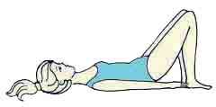 11. Исходное положение как в предыдущем упражнении, только соедините колени и ступни. Шлепните два раза ягодицами по полу, потом подожмите таз кверху. Повторите все упражнение 40 раз.